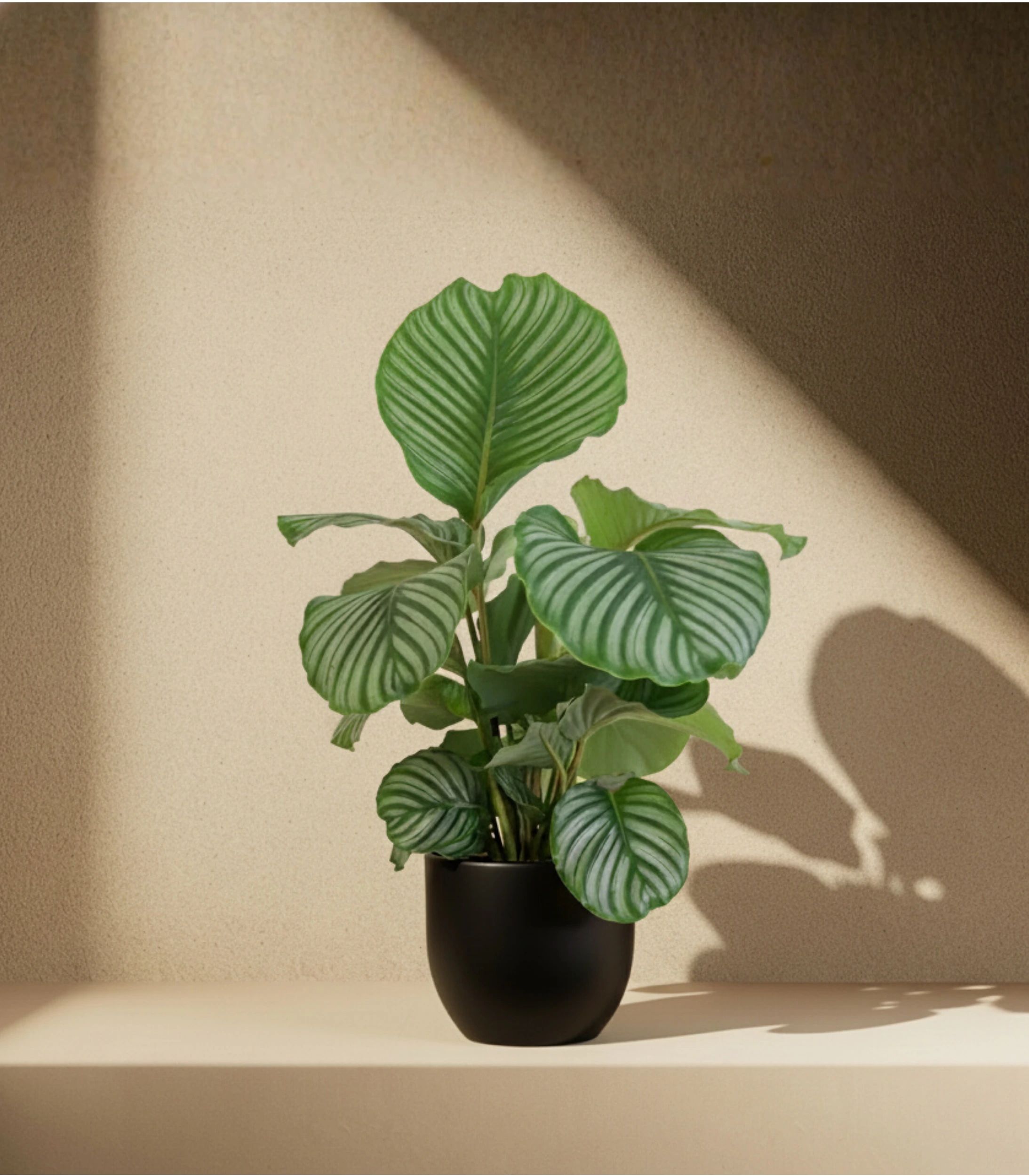 🪴 Bakım: Yapraklarındaki tozlar yumuşak, nemli bir bezle silinmelidir. Bu, bitkinin desenli yapraklarının canlılığını korur ve fotosentezini destekler.