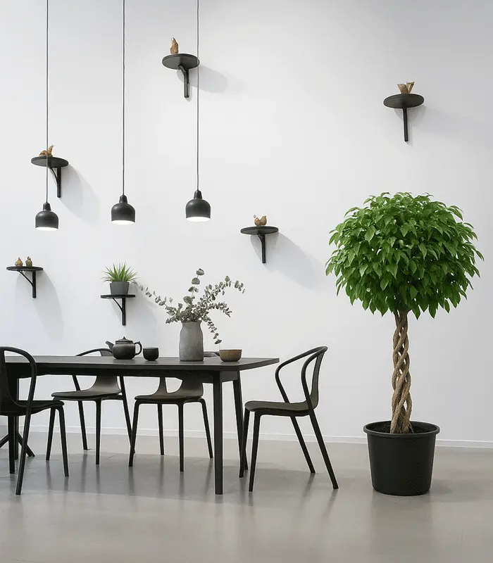 - 🌴 Görünüm: İnce ve uzun yapraklarıyla tropikal bir dokunuş sunar. Örgülü gövdesi sayesinde her ortama zarif bir hava katar.