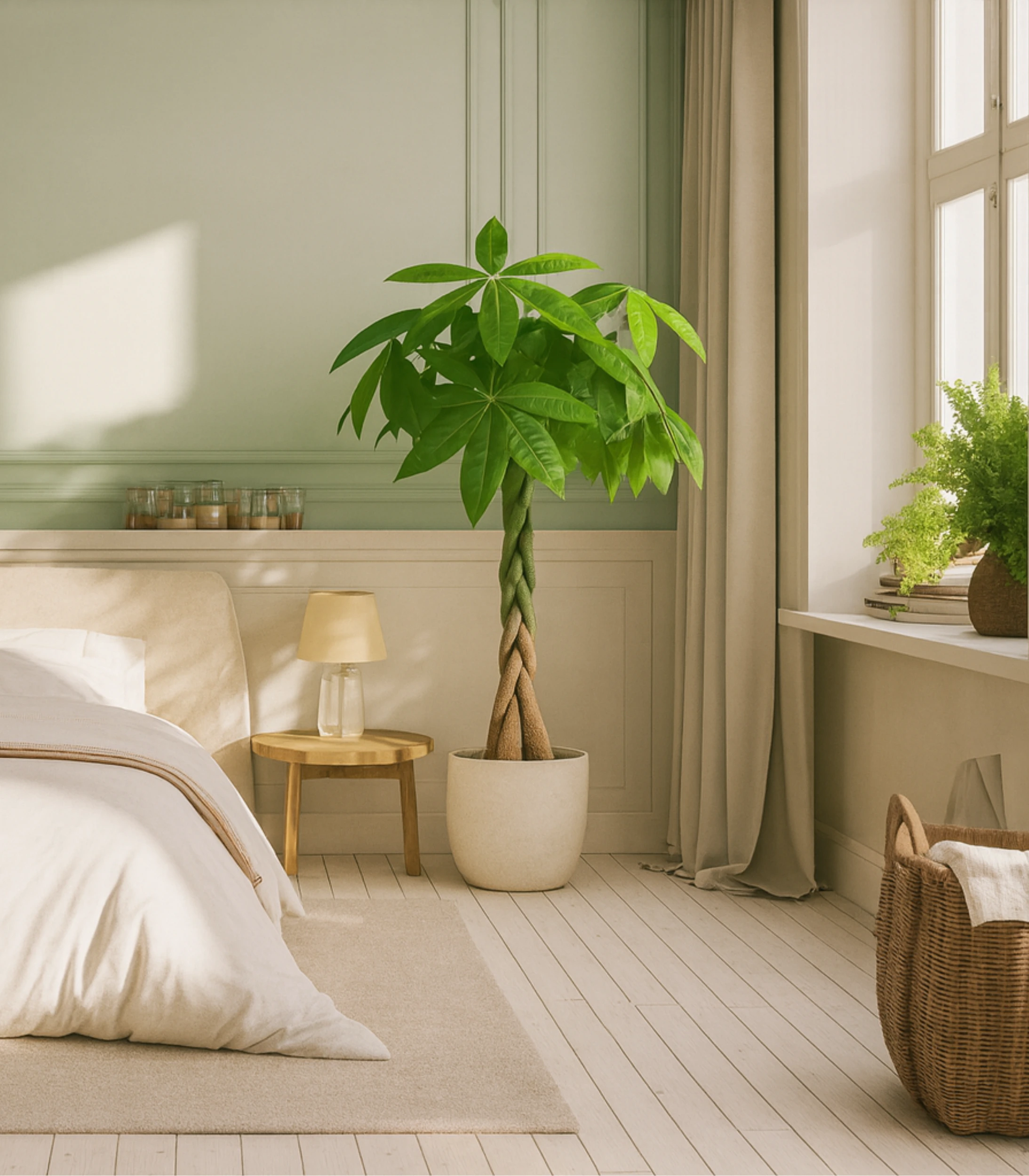 🌳 Görünüm: Örgülü gövdesi ve geniş, parlak yeşil yapraklarıyla dekoratif ve şık bir iç mekân bitkisi