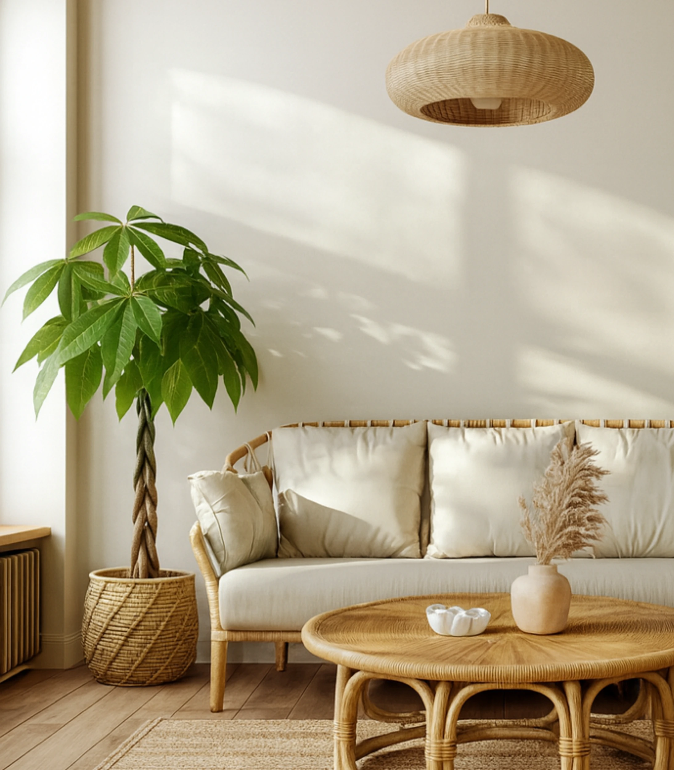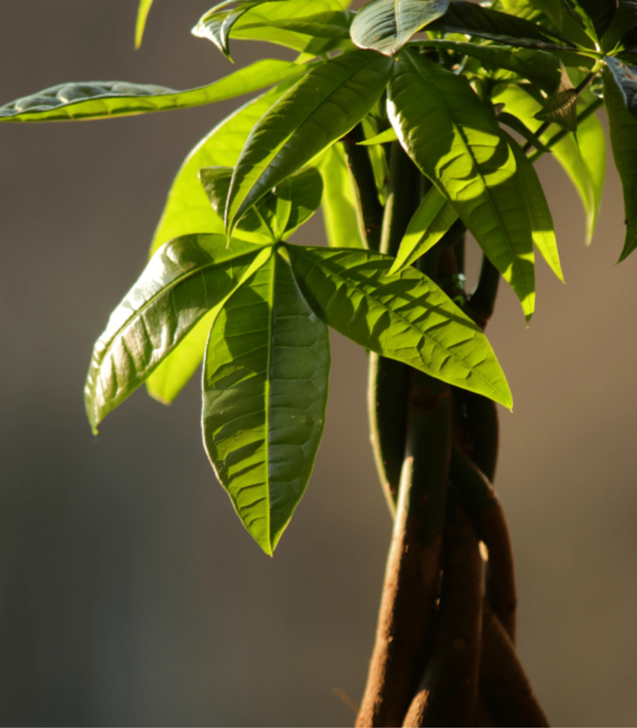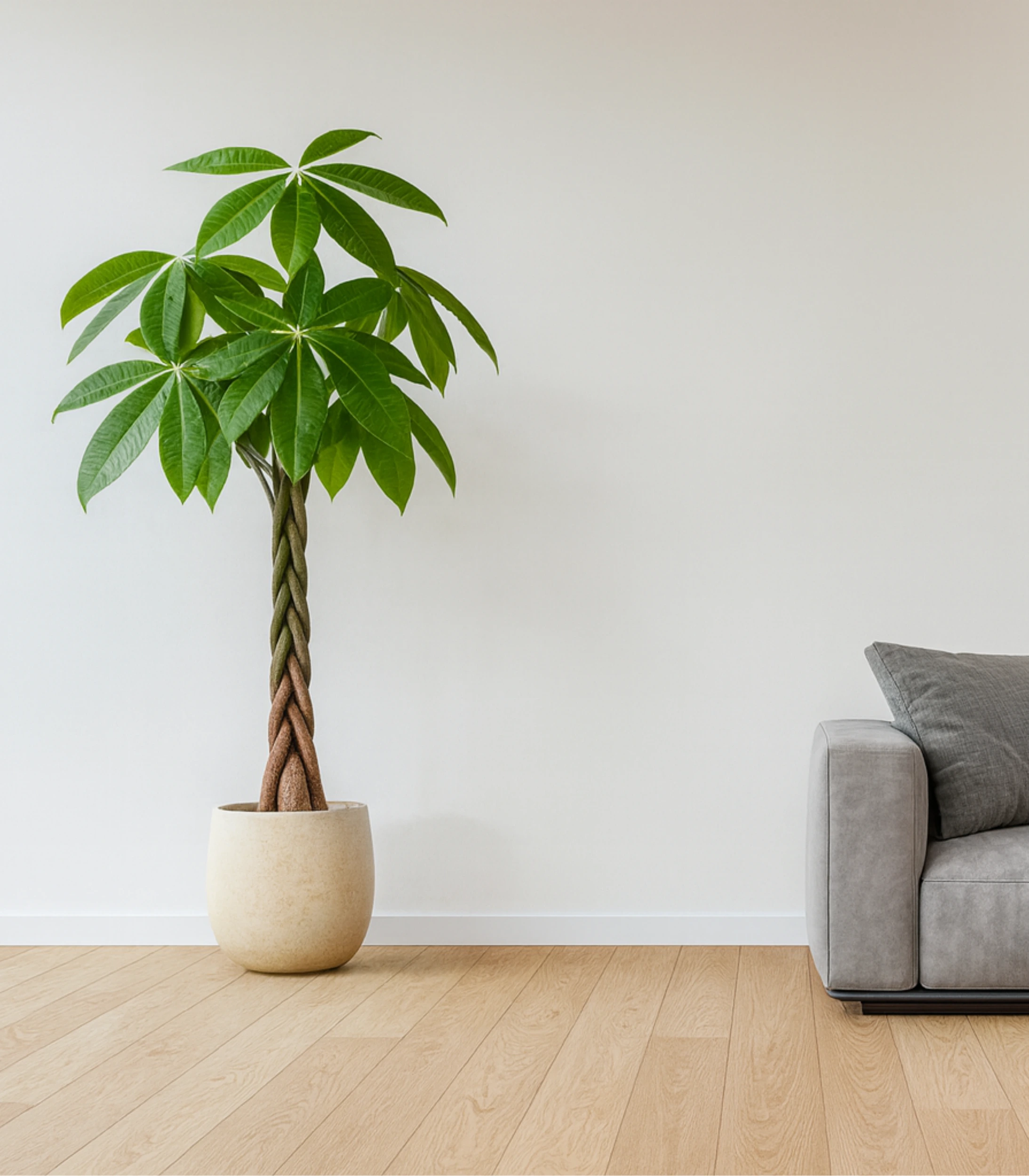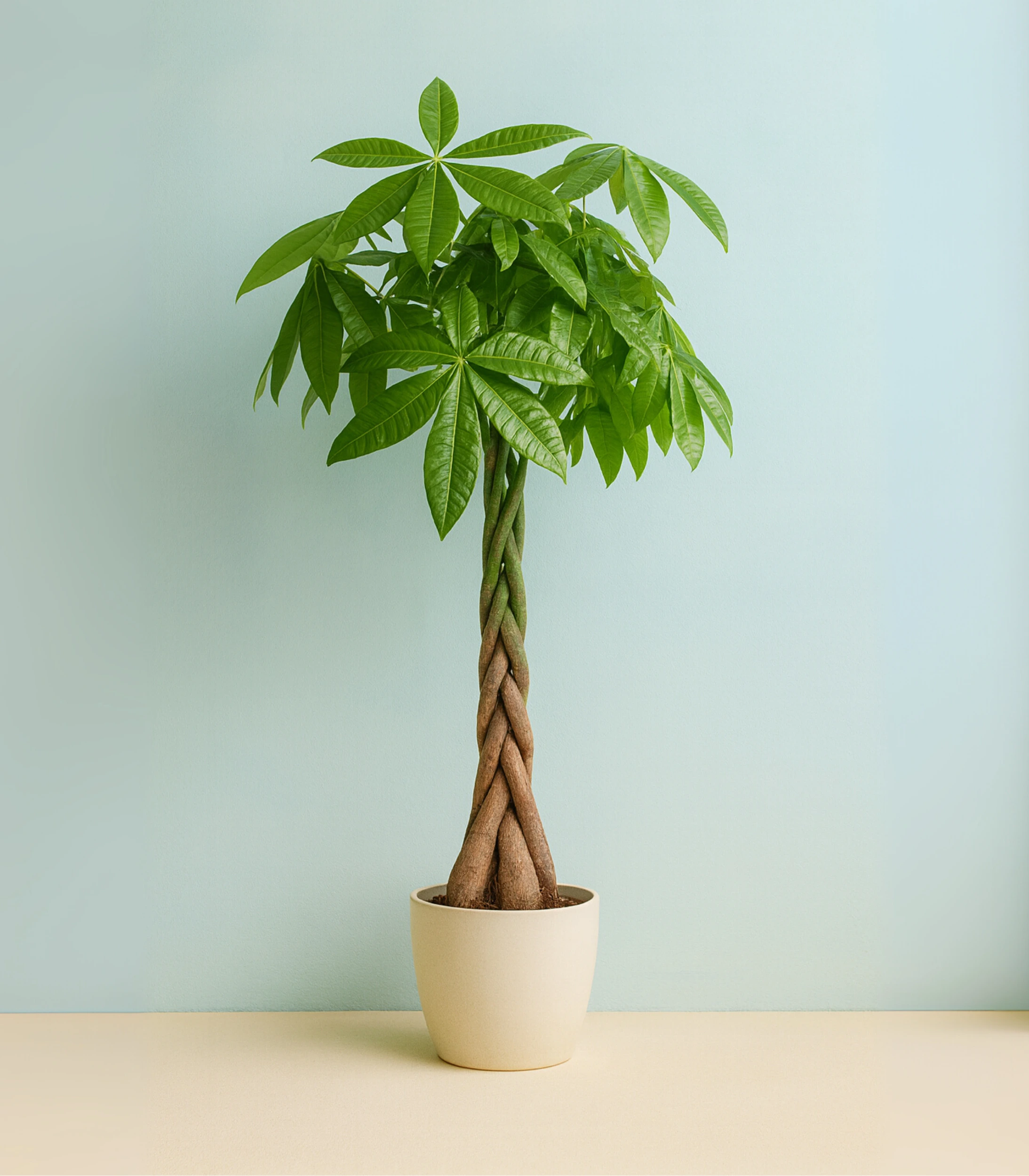 Örgülü Para Ağacı (Pachira Aquatica), örgülü gövdesi ve geniş, parlak yeşil yapraklarıyla bulunduğu ortama estetik ve huzurlu bir hava katan dekoratif bir iç mekân bitkisidir. Aydınlık ve dolaylı güneş ışığını sever; doğrudan güneş ışığı yapraklarının zarar görmesine neden olabilir. Sulama konusunda ise toprağın üst kısmı hafif kurudukça sulanması önerilir, fazla sulamadan kaçınılmalıdır. Ilık ve sabit sıcaklıkları tercih eder, soğuk hava ve ani sıcaklık değişimlerinden korunmalıdır. Bakımı oldukça kolaydır; yapraklarının zaman zaman nemli bir bezle silinmesi hem parlaklığını korumasını hem de sağlıklı bir şekilde gelişmesini destekler. Hem zarif görünümü hem de bulunduğu ortama kattığı pozitif enerjisiyle eviniz ve ofisiniz için mükemmel bir seçimdir.
